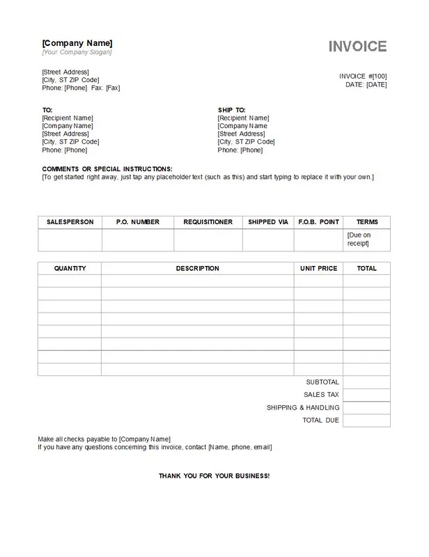 Word documents work on almost all devices. You can save, print, or email the invoice directly to your clients without any formatting issues.